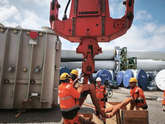 The unit arrived from China by sea, and marks the first stage of a delivery to the Vestas wind farm in Akmene.