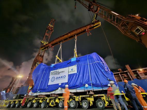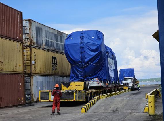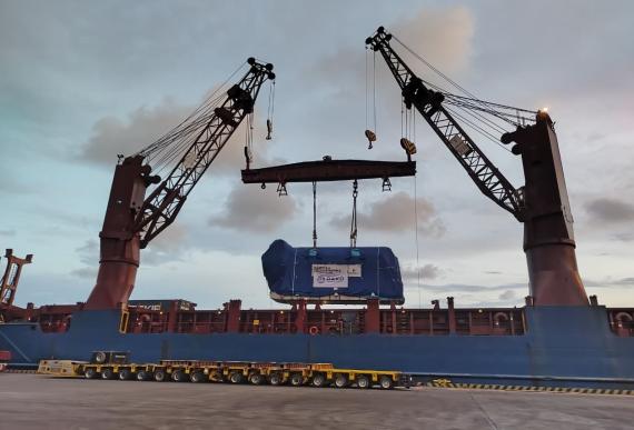 During the holiday season, DAKO Worldwide Transport successfully delivered a 291tn engine (14.24 x 4.26 x 6.32m) and a 75tn generator for an ongoing power plant project in Cartagena, Colombia.