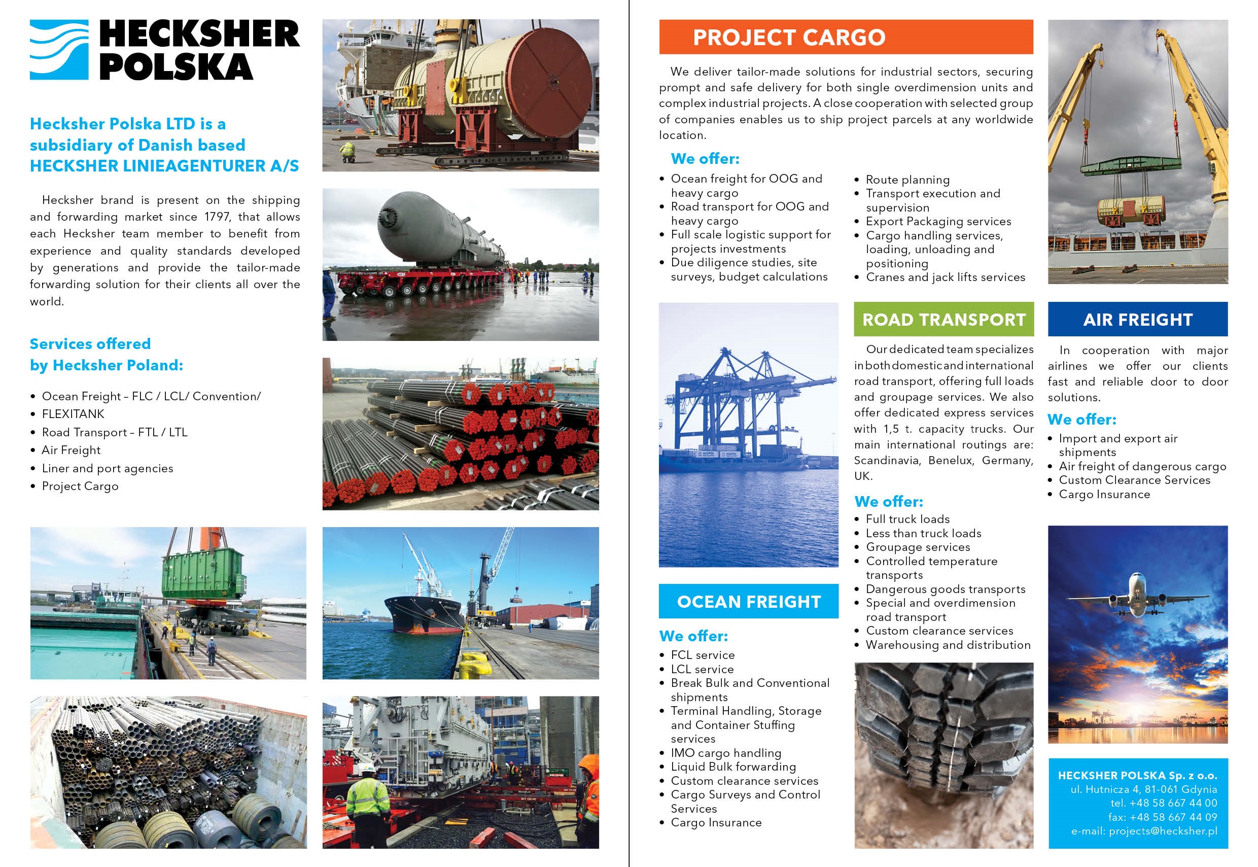 Hecksher Polska was established in Gdynia in 2003 as the branch of Hecksher A/S (first established in 1797 - the oldest shipping company in Denmark) and have since added a 2nd office in Warsaw. Dariusz states; "Our mission is to build trust and confidence by providing our partners with high quality services adjusted to individual needs at attractive prices. We value long-term relationships with our clients and partners which are built through the professionalism and reliability of our staff. We welcome you to share our experience in shipping!"