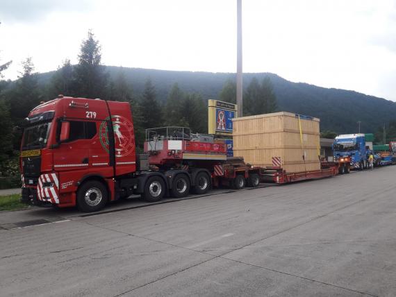 Vice President & CBO, Omer Omeroglu said "We had to use ‘kassel brücke’ type of trailer due to the cargo’s height and weight. It was first loaded ‘on to the beams’ because our truck + trailer combination would be too long for the exit from the facility and around streets. So, the shorter version of the truck, we loaded and moved to our depo.