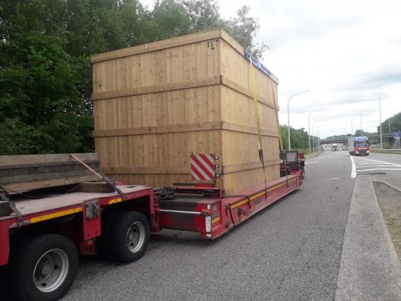 After reaching our depo, we added more axles so it became suitable for the destination address in the UK. To make it shorter, we re-loaded the unit ‘in to the beams’ and ready to make the journey to the UK. By that way, we had less height but a longer truck which suits the highways."