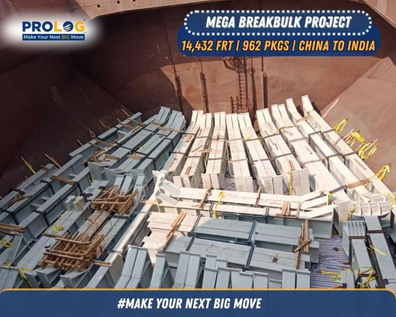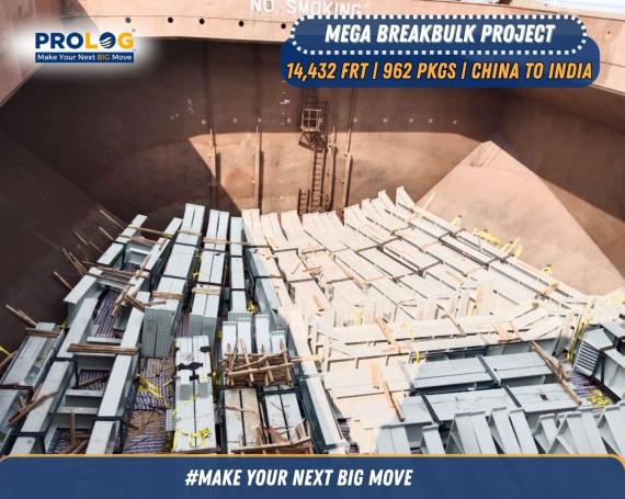 PROLOG India have successfully executed a mega breakbulk project from China to India totalling 14,432frt and 962 pieces. A true testament to their operational strength and expertise in large-scale cargo handling.