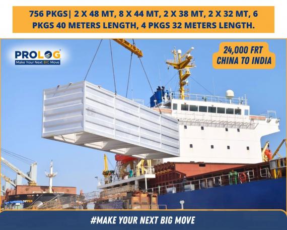 PROLOG India is proud to announce the successful execution of a record-breaking 24,000frt shipment loaded entirely on a single vessel and moved seamlessly from China to India.