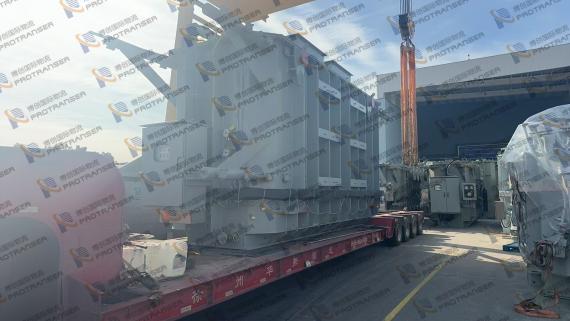 The Protranser team delivered three sets of transformers from the door in China - one set at 104tn, measuring 10.20 x 3.55 x 4.40m to Singapore and the other two sets weighing 110 tons with measurements of 7.24 x 3.24 x 4.06m to Malaysia.