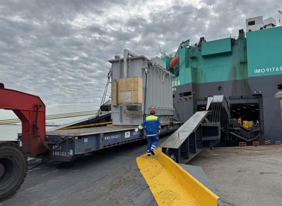 The weights of the transformer's main bodies range from 65tn to 86tn and they were shipped in different lots - 4 sets by RORO vessel from Wuhan and 2 sets by container vessel from Shanghai. As well as the main bodies, the transformer's parts were stuffed in 29 containers.