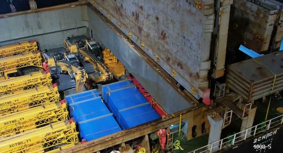 The weight of each excavator is 37tn with the total cargo volume at 4pcs / 75tn / 286cbm.