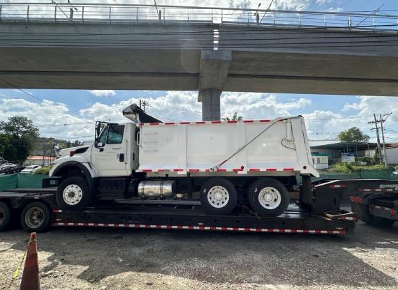 The operation involved the transportation of two dump trucks, each with dimensions of 10.25 x 2.65 x 3.99m and a weight of 11,000kg per unit.